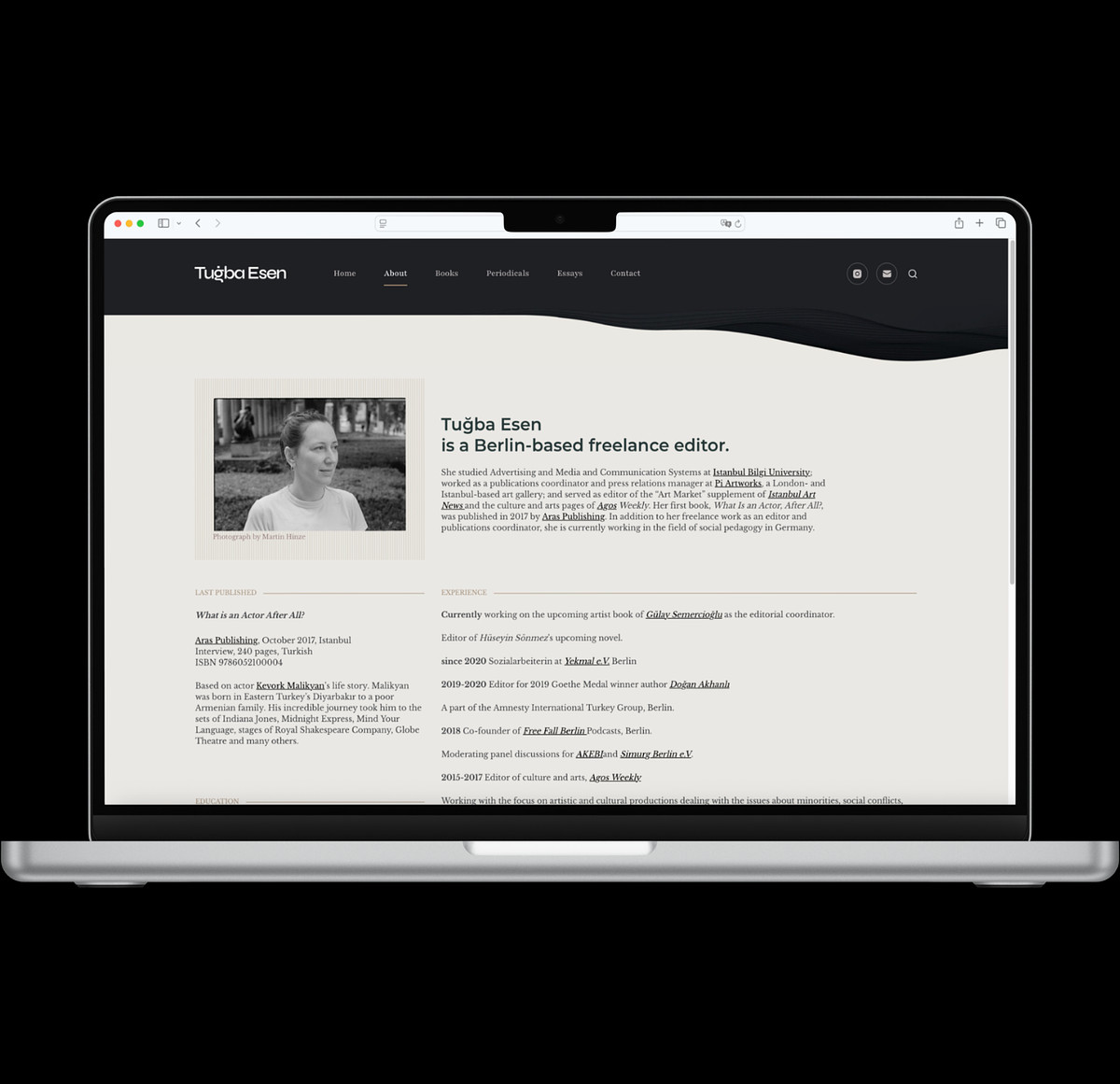 Designed for author and editor Tuğba Esen, this website presents her literary work with clarity, elegance, and unwavering focus. The visual language is anchored by the photography of Martin Hinze, creating an atmospheric depth that perfectly mirrors Tuğba’s editorial practice.
