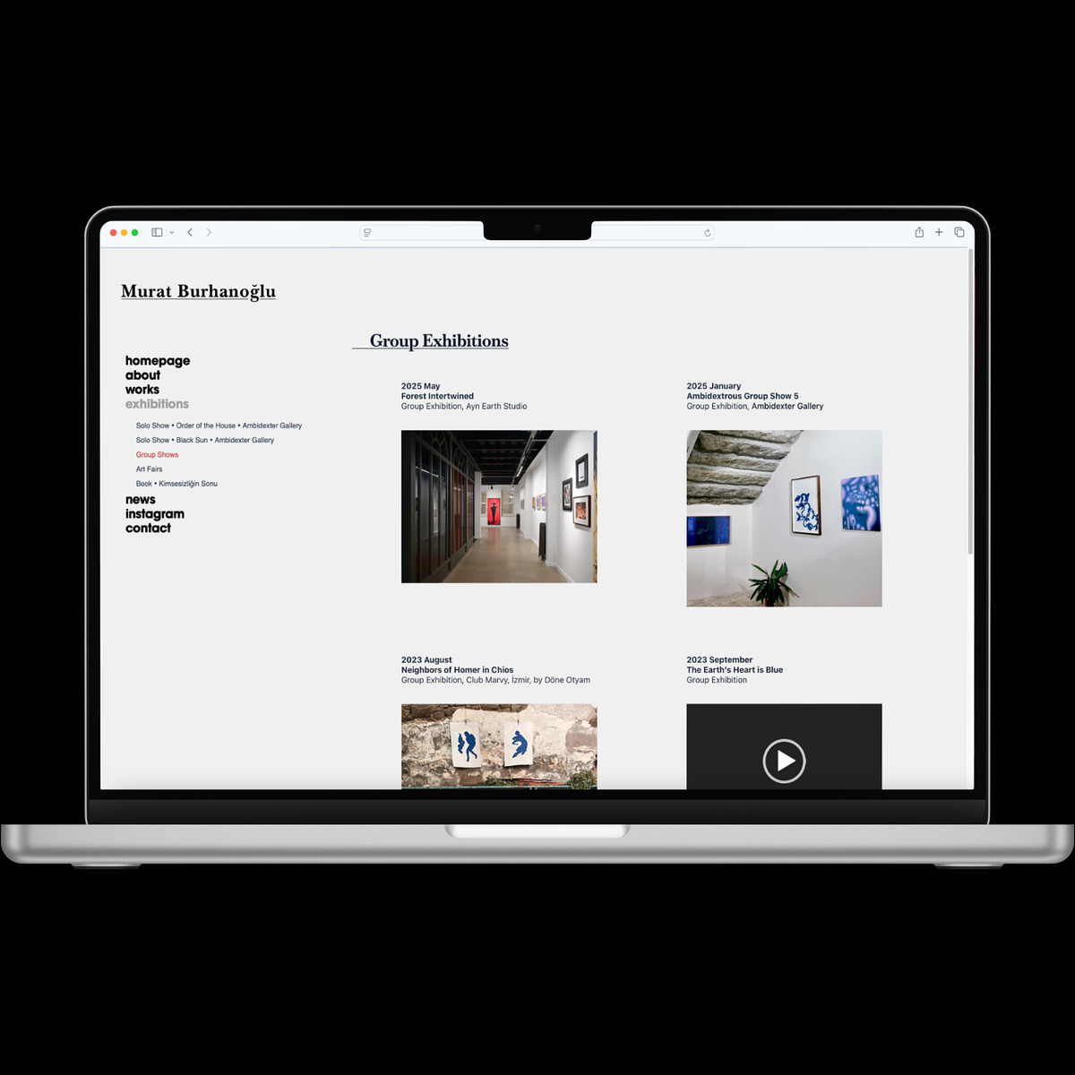 Artist Murat Burhanoğlu examines the deep codes of the "human condition," spanning from the dawn of humanity to the present day. To honor this depth, the project demanded absolute simplicity. I crafted a composition that refuses to compete with the artwork; instead, it welcomes the viewer with a serene rhythm, guiding their focus away from "design noise" and directly to the essence of the pieces.