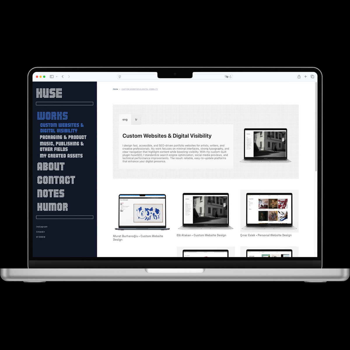 Over the last seven years, I have focused on building custom websites that help creatives strengthen their digital identity. These sites not only showcase their work beautifully but also ensure they are visible and memorable in the digital space.