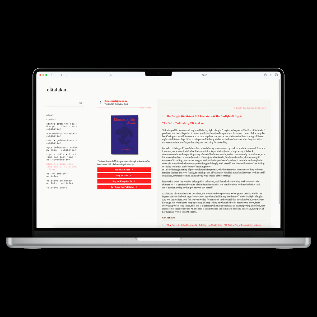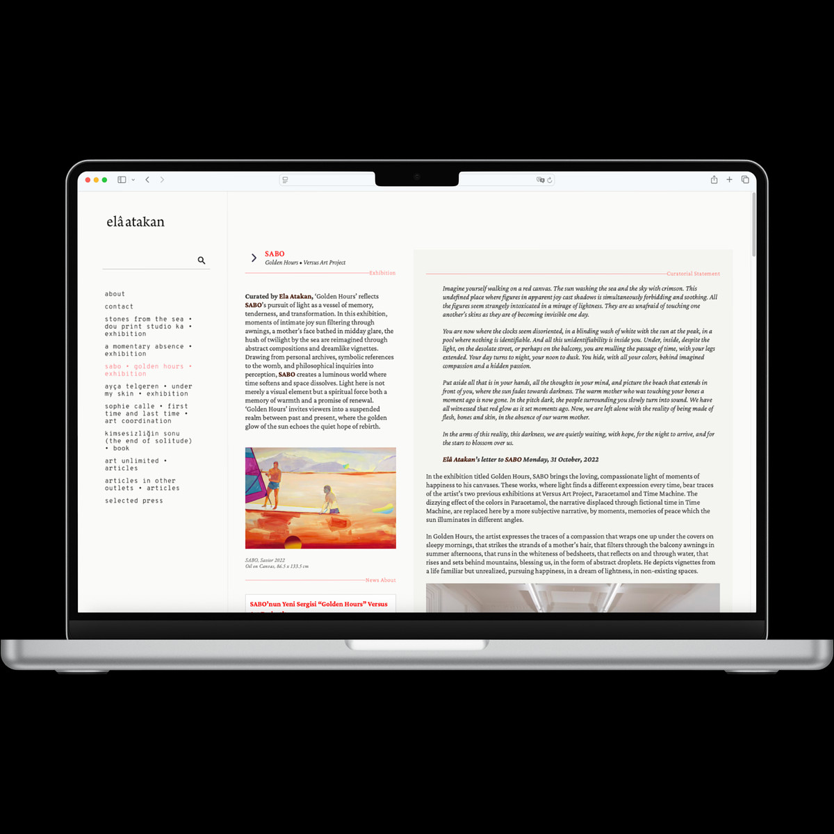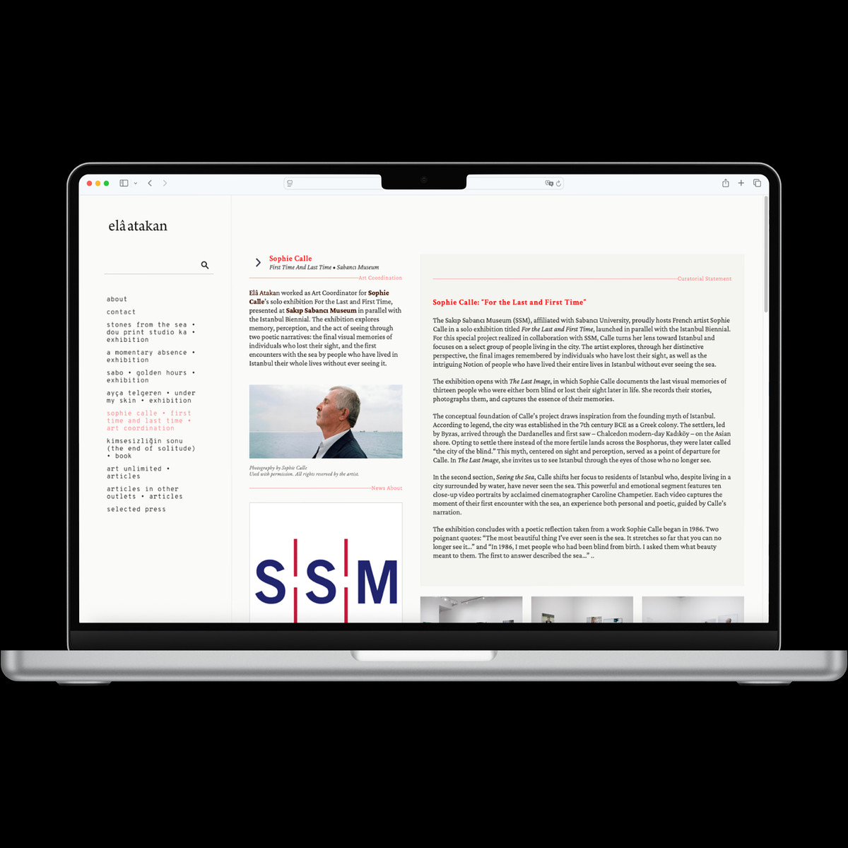 Designed for writer and curator Elâ Atakan, this website reflects her dual identity through a minimalist yet distinctive aesthetic. Every element from the precise typography to the strategic use of negative space was meticulously chosen to harmonize with Elâ’s visual language.