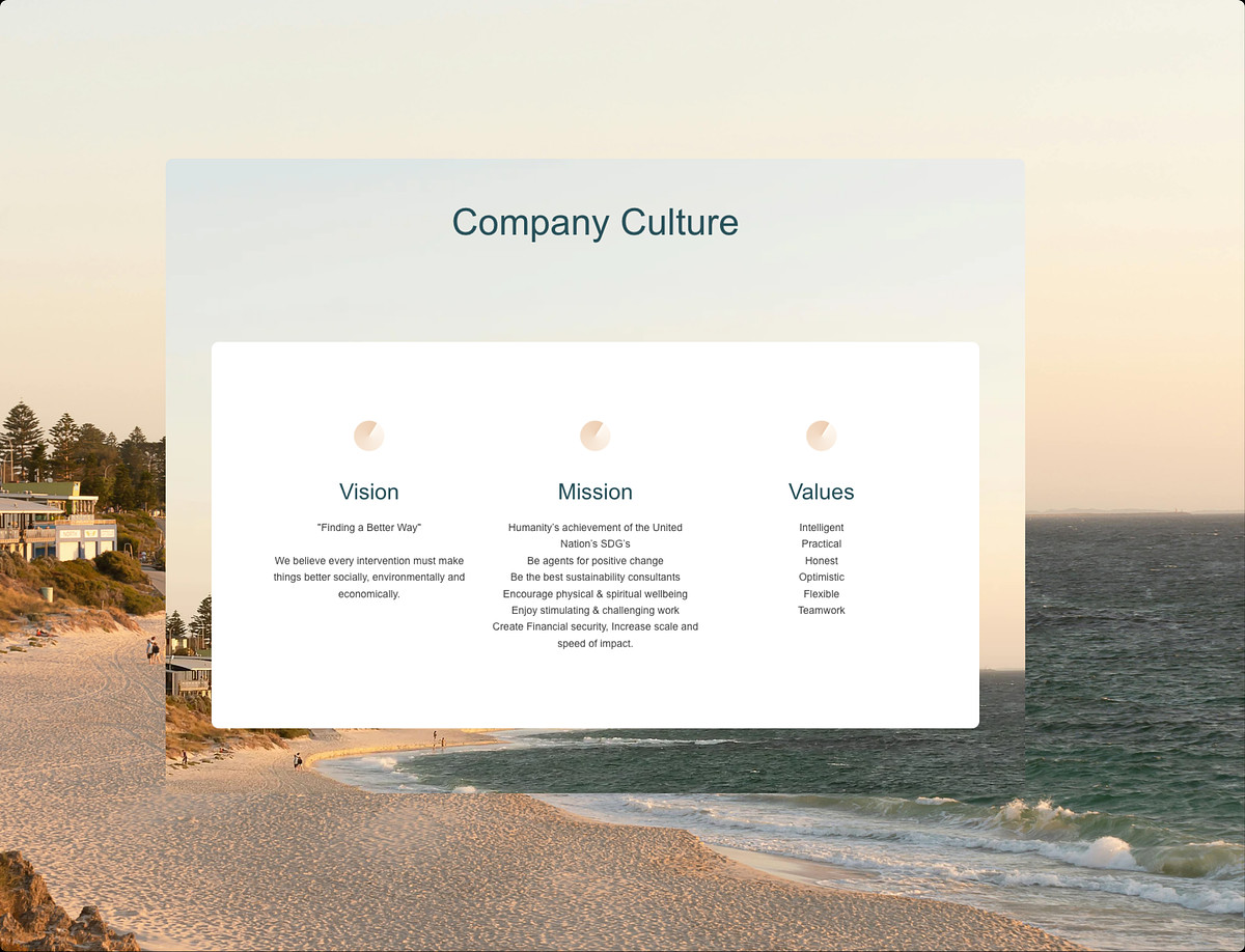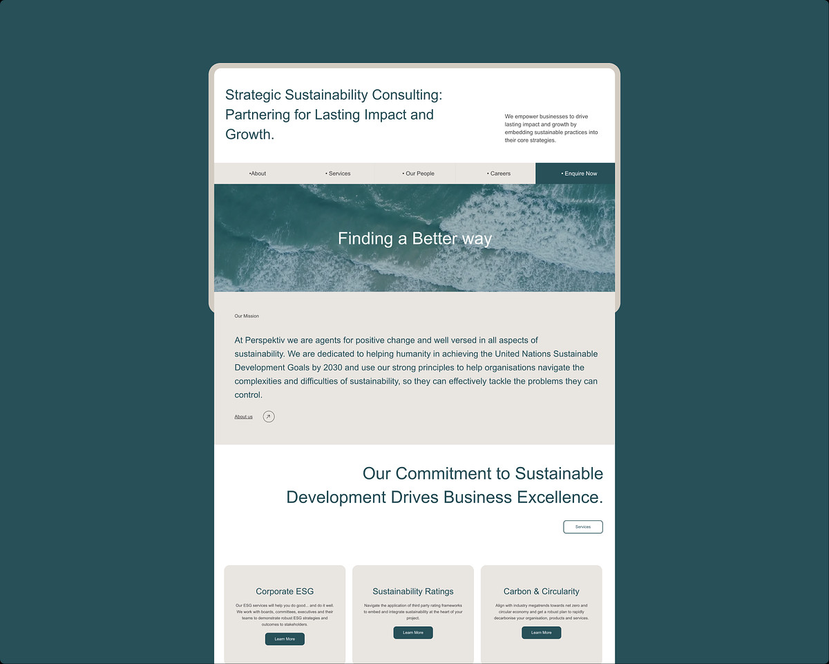 Full modern website design and ongoing management for boutique sustainability consultancy Perspektiv Australia. The project focused on creating a calm, contemporary online presence that reflects Perspektiv’s values around sustainability, clarity, and thoughtful impact.