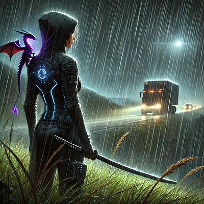 The vision locked in and Sytus was in a different form. She wore a cloaked, hyper-accelerated velocity ergonomic tac jacket. The undersuit protected her organs from feeling too much of the stimulus. Rain poured down in heavy stacked flows. She stood tall on the grassy hillside that overlooked the road.Her katana was not full length—slim and sleek—hugging her hip and upper left quadricep. The comms were built into the upper chest portion of the jacket.“Heads up, Sy. Convoy headed your way.”The female voice leaked with a sense of urgency.Sytus...
