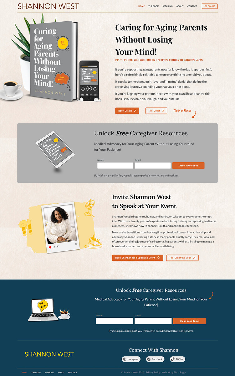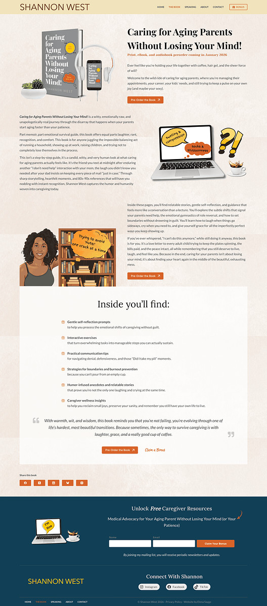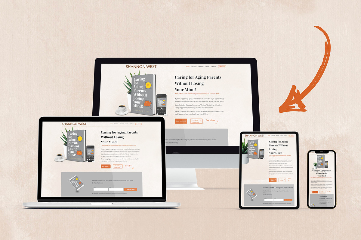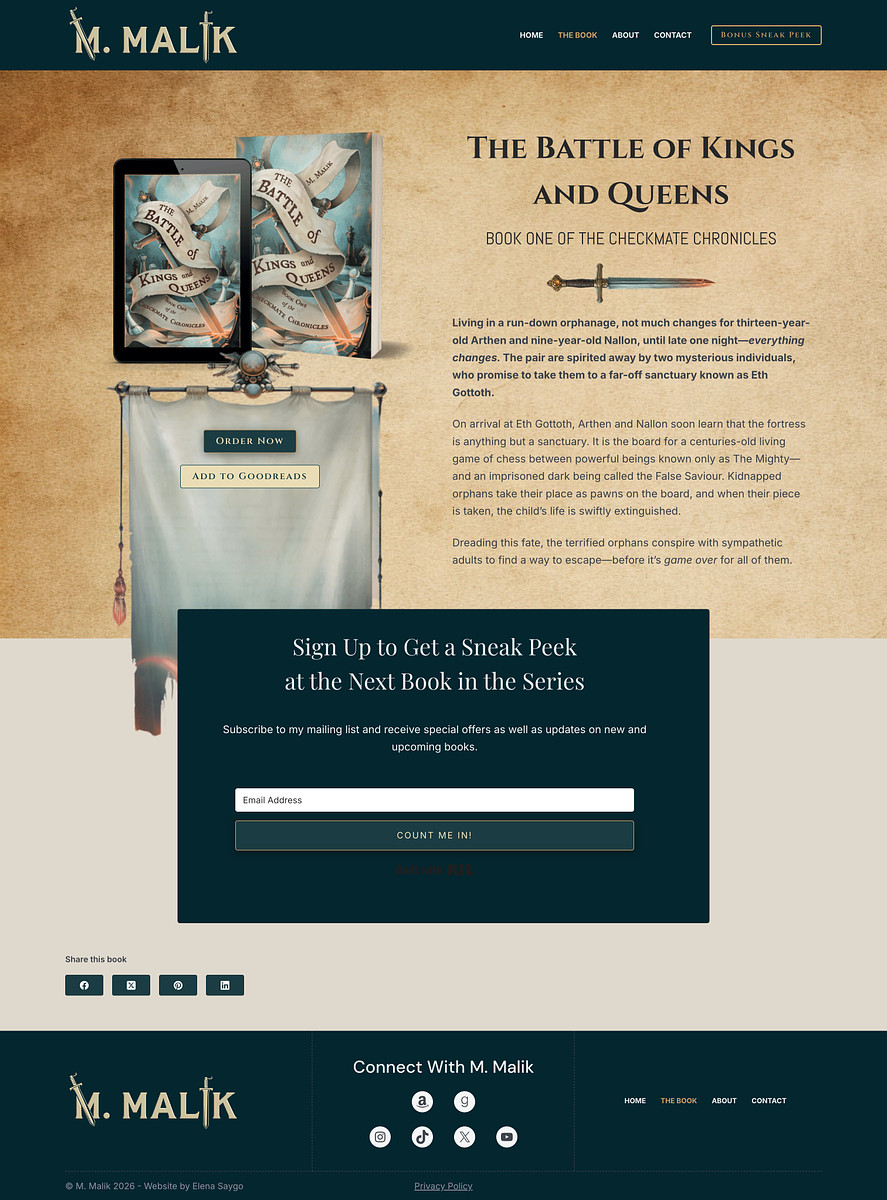 Website for the upcoming book and series, email list building, and lead magnet via Mailerlite.