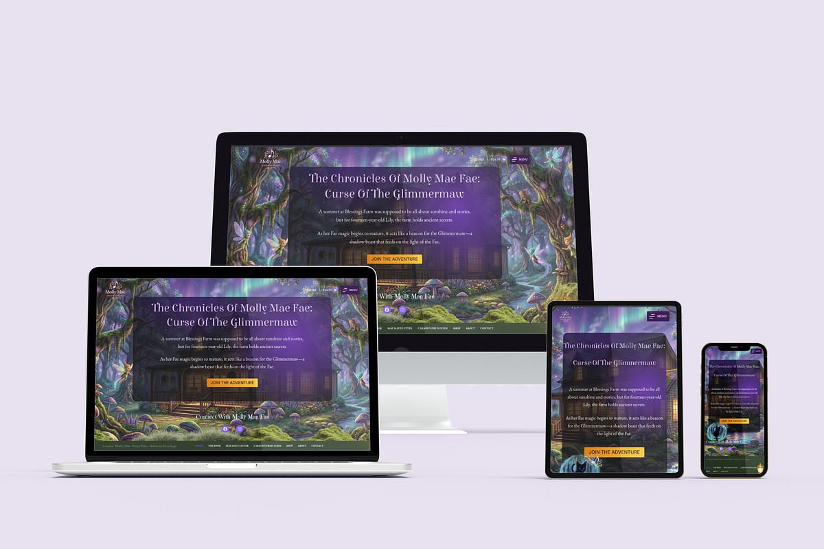 A clean, modern author website built to support current and future titles. The site includes a fully integrated store for direct book sales, an email list signup to grow the author’s readership, and flexible page structures that allow easy expansion as new books are released.