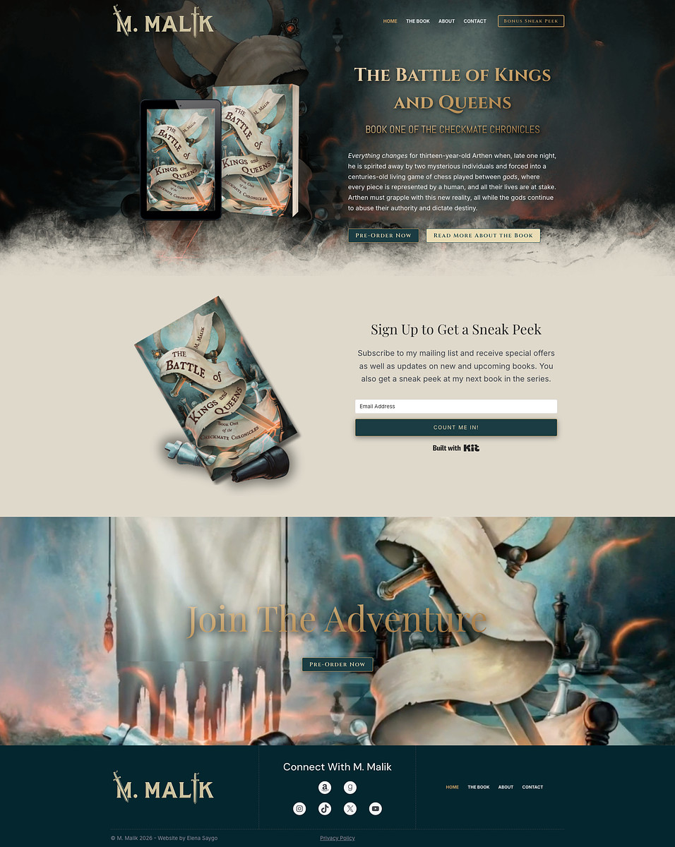 I was thrilled to work with this young author to bring his website to life. The website features his debut book, cover artwork, subtle animations, and a reader magnet.