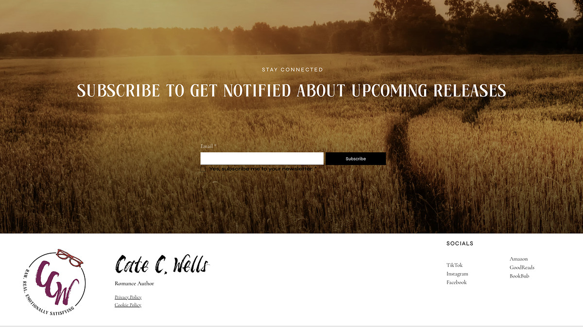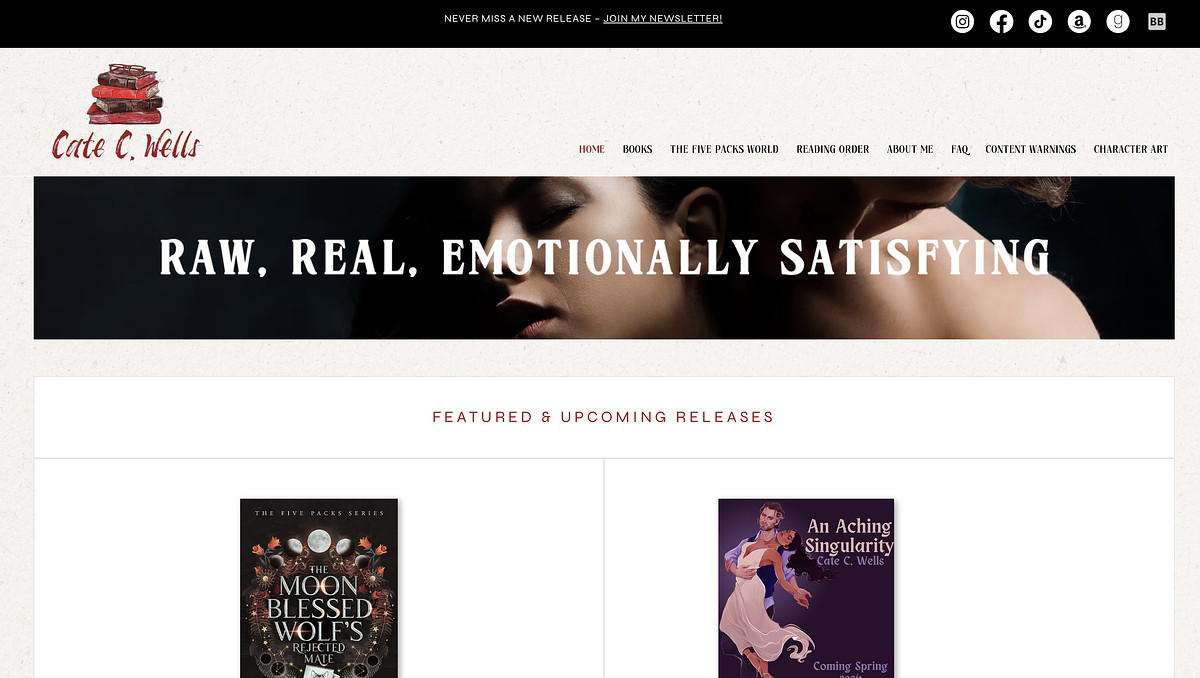 I designed and built this website for romance author Cate C. Wells with the goal of making it feel like an extension of her books—emotional, a little gritty, and easy to get lost in.