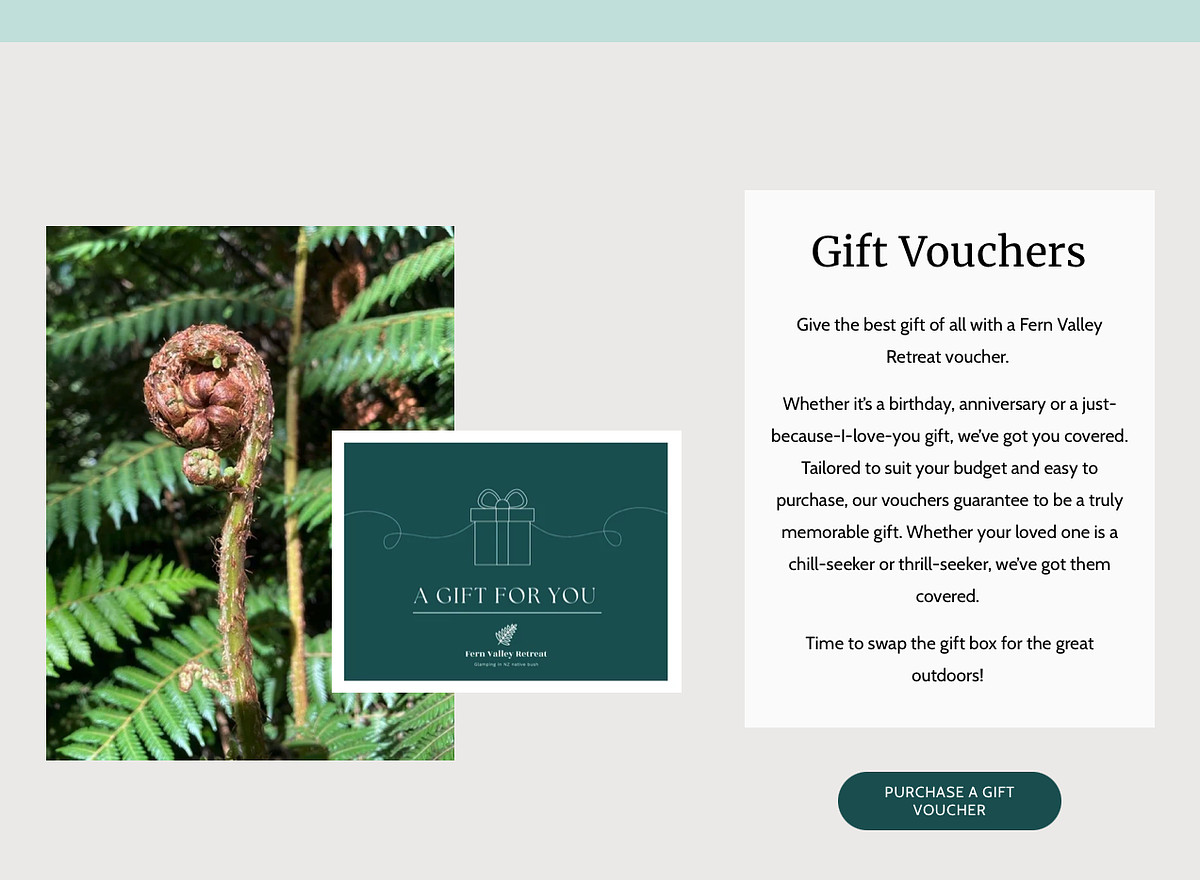 This immersive, nature-inspired website was designed for Fern Valley Retreat, an off-the-grid glamping destination offering guests a sanctuary to rest, recharge and reconnect with nature. The design blends rich photography, organic shapes and serene colors to create an atmosphere of tranquility and escape.