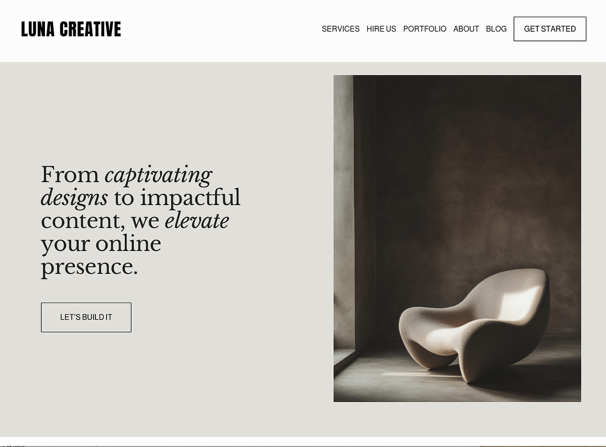 This modern, high-impact website for Luna Creative, a branding and digital marketing studio specializing in helping businesses and solopreneurs stand out online. The site blends clean, editorial-inspired visuals with strategic content placement to communicate both professionalism and creativity.