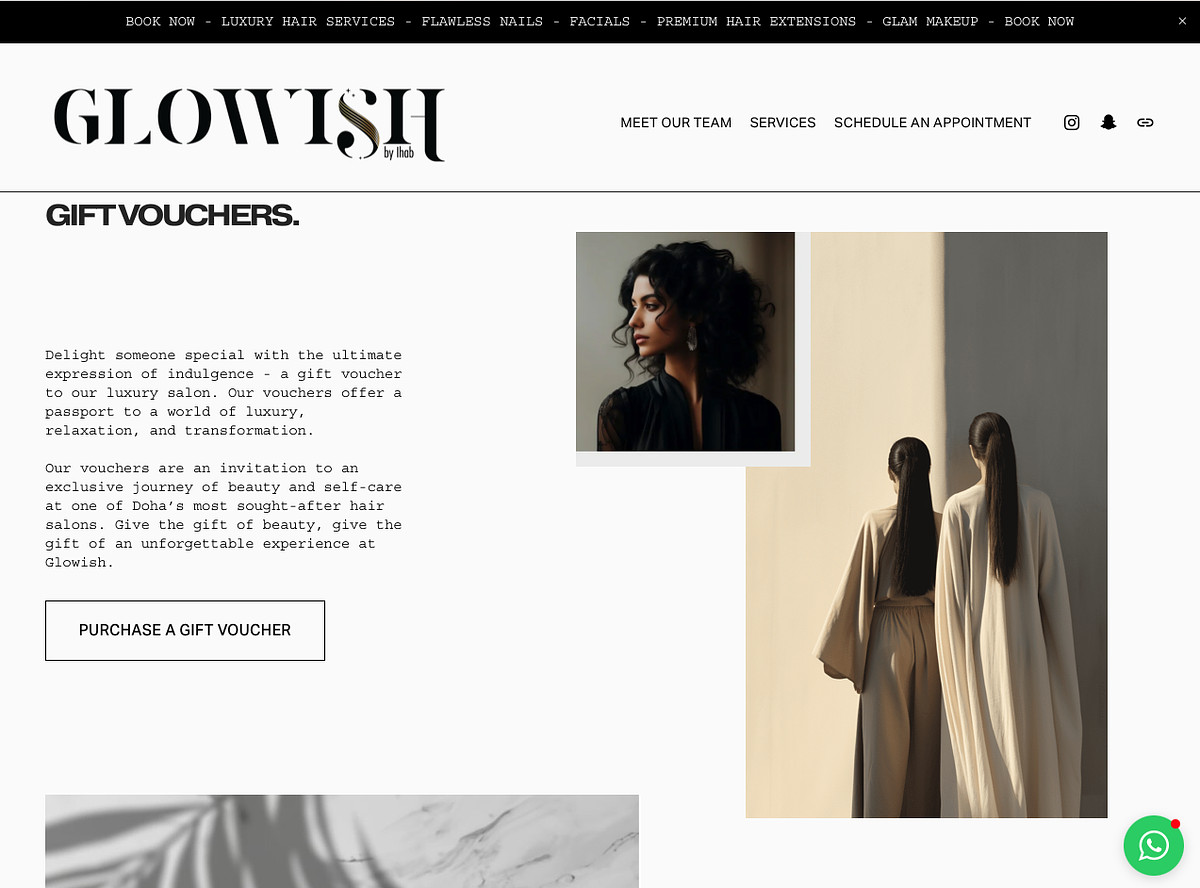This sleek, modern website was created for Glowish, a luxury hair salon offering premium hair services, professional-grade products and an elevated client experience. The design reflects the brand's sophisticated aesthetic while ensuring an easy and intuitive browsing journey for clients.