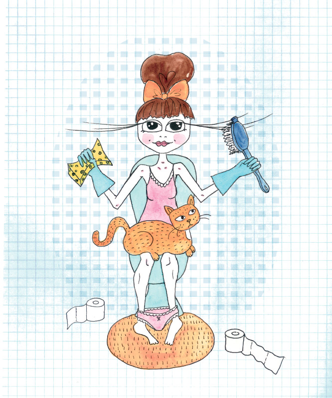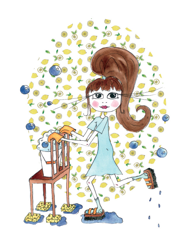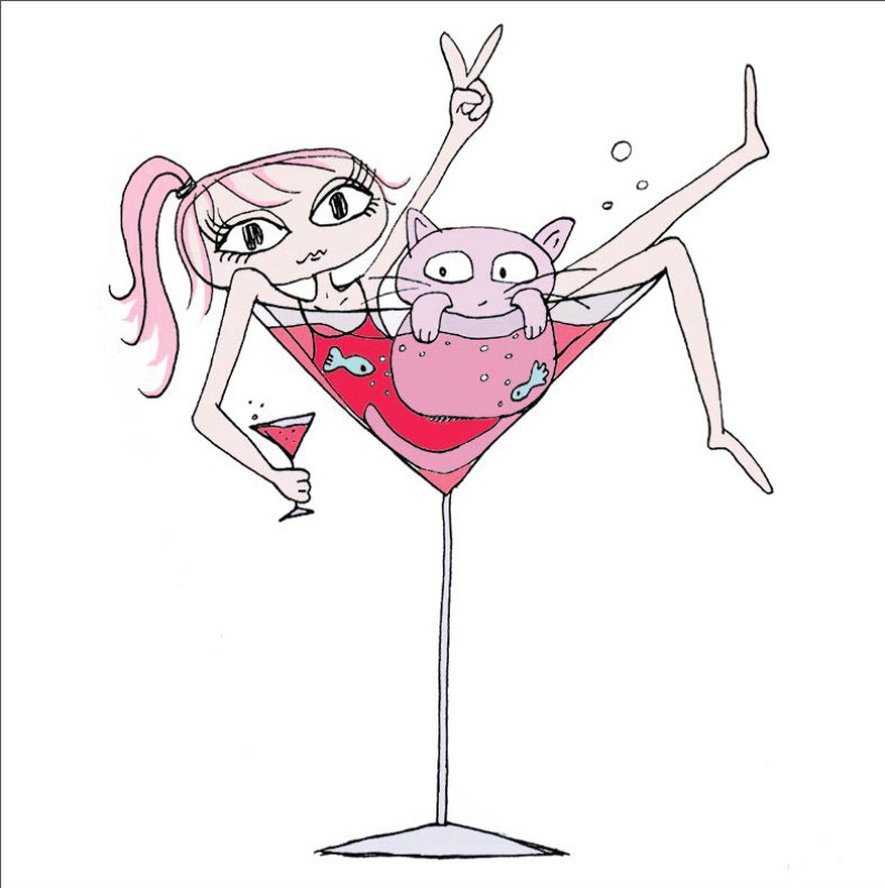 Happy & colourful illustrations with humor and pretty but clumsy ladies, big eyes, skinny legs & pink undies are my recipe!