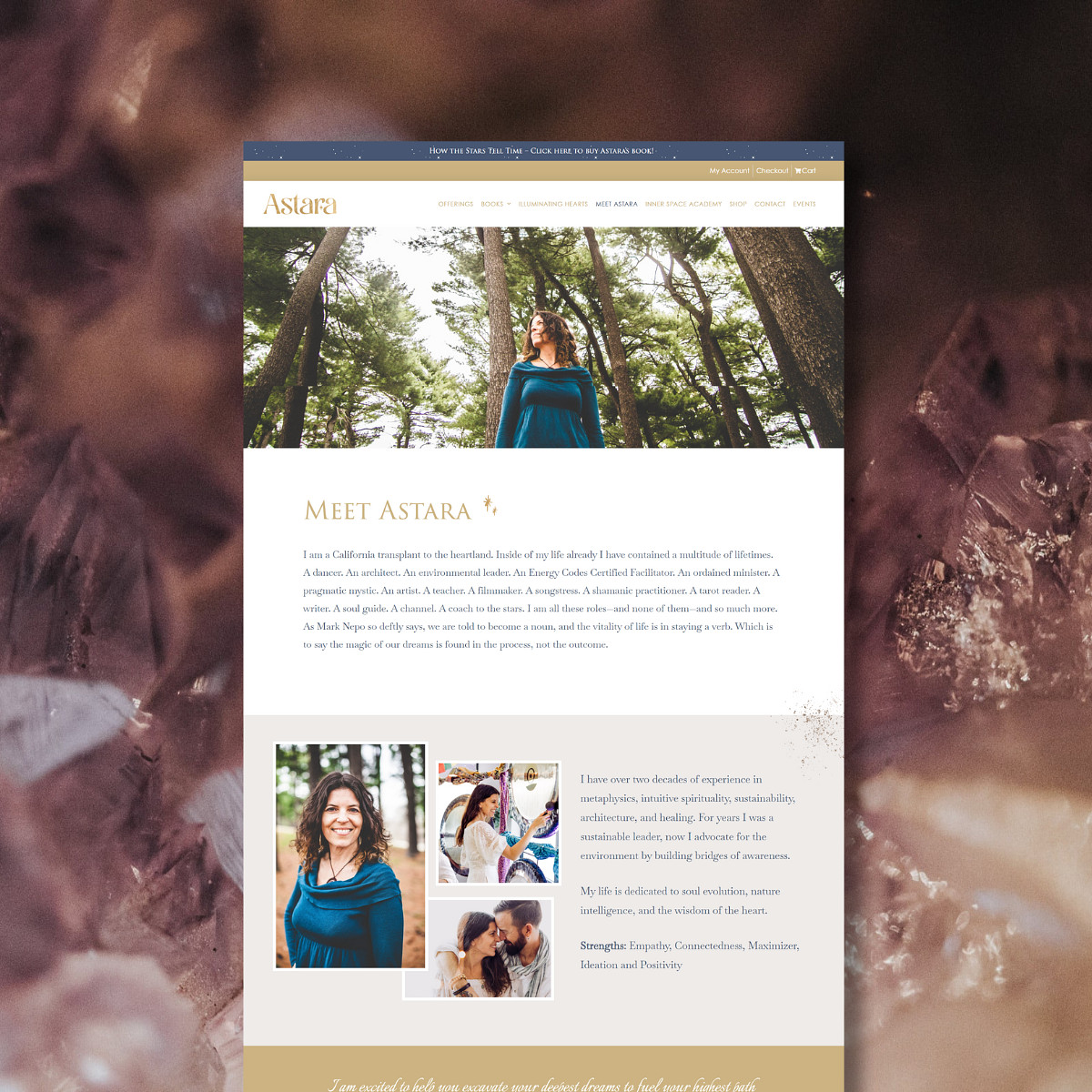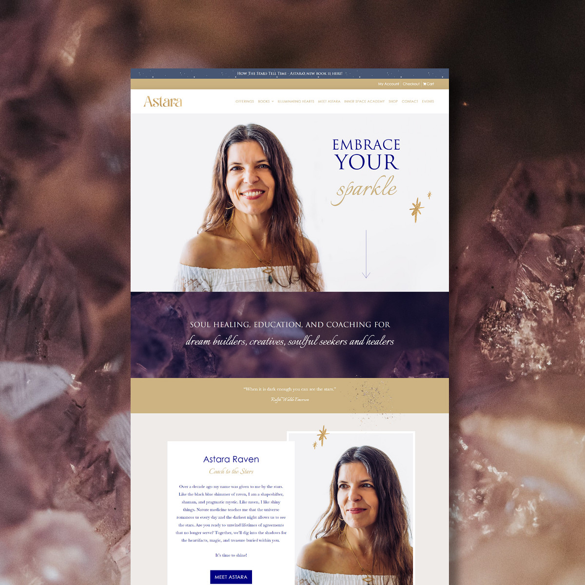 What started as an inquiry for improving her existing website evolved into a complete rebrand and website redesign, filled with lots of art, sparkle, and soul. Astara is a true renaissance human (author, architect, coach are just some of her titles), and she wanted her website to reflect that.