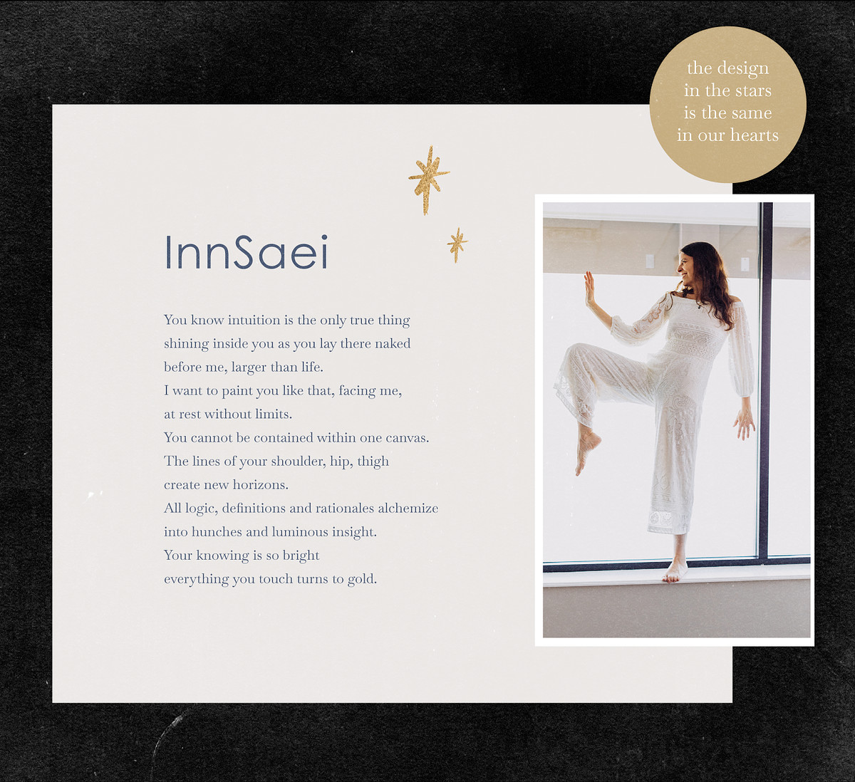 "Every time I open my website, every time someone compliments a flyer or post, or page, I think of you. And my heart fills with joy and gratitude. Because whenever and wherever you’re involved, the work flows like a dance—and the final creation always feels like home. Thank you for all you do. But more than that, thank you for who you are. With kaleidoscopic appreciation, and big big love,🤗😘Kristina"