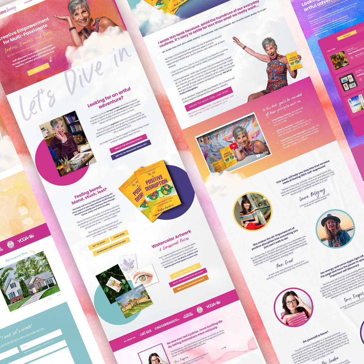 Kristina showed up in my inbox one day looking for a brand and website developer for her budding business and launch of her first book, "The Art of Positive Disruption," and has since been filling my life with bold colors, playful disruption, and Krisellaneous words. This has been the most vibrant visual identity and website I’ve ever designed.