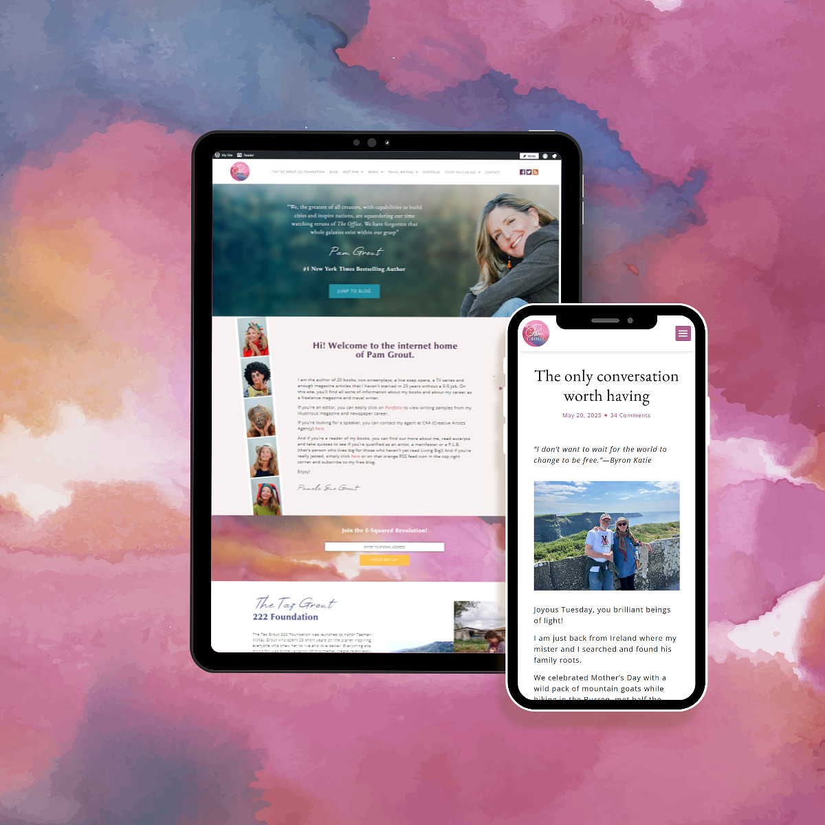 I have adored Pam’s writing style ever since I first got my hands on E-Squared, years ago, and I wanted her website to capture her fun, colorful, and creative personality. It was also really important to keep things simple so that her content and her writing could shine.