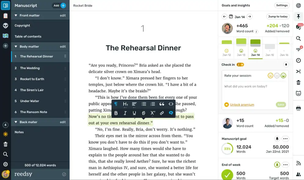 In the rest of this FAQ, we’ll detail the various features of Reedsy Studio and how you can make the most of them.