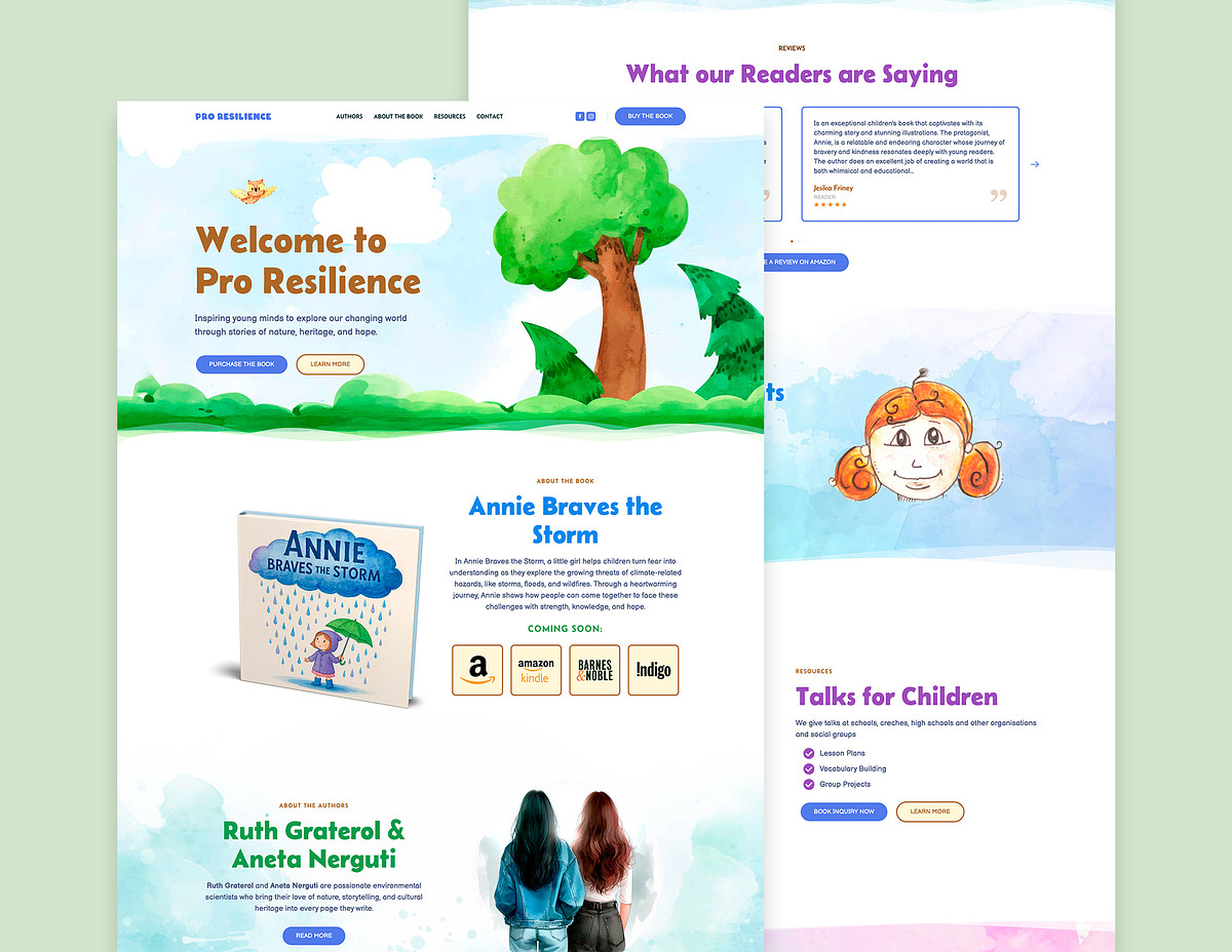 Child-friendly WordPress platform for environmental scientists/authors Ruth Graterol & Aneta Nerguti, centered on their picture book about climate resilience and hope.