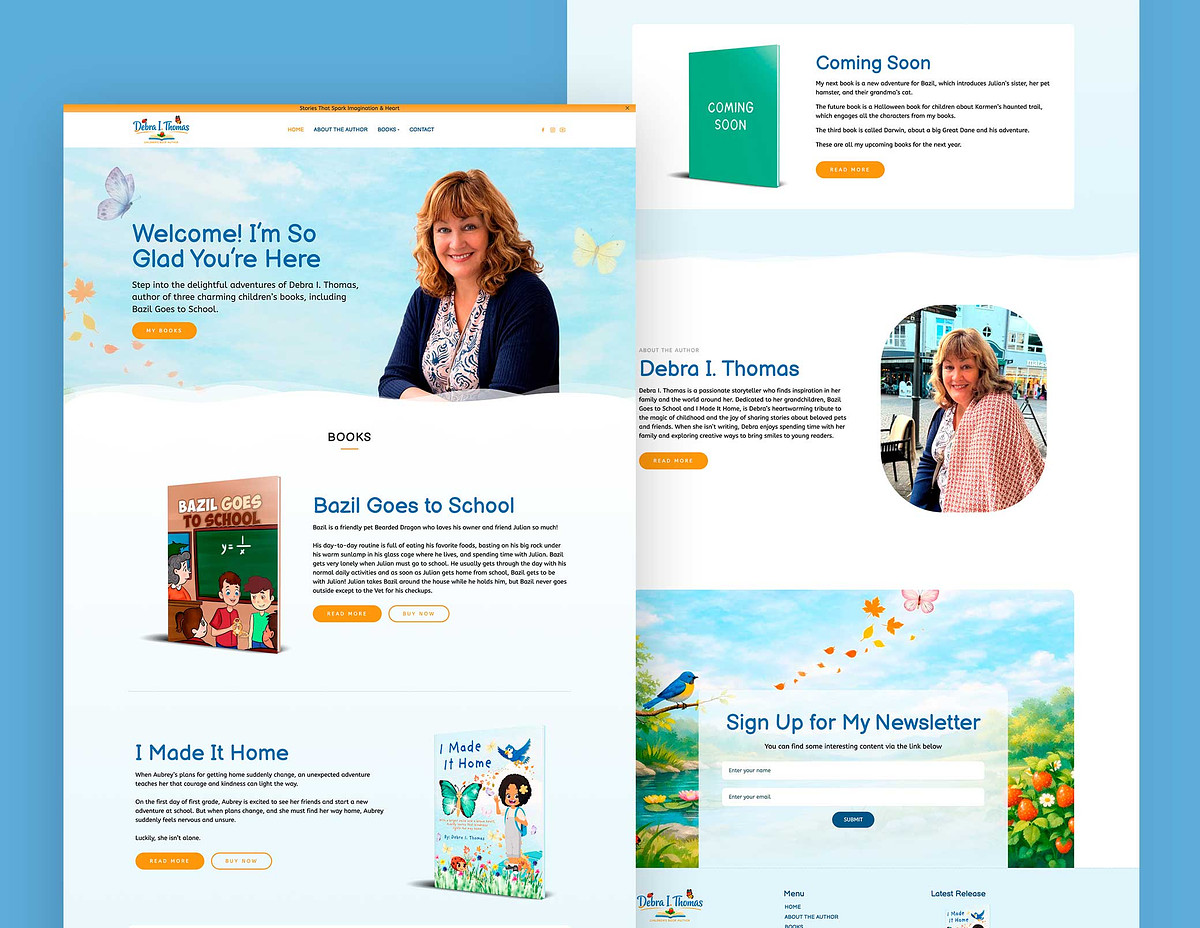 Children's books & young readers — Designing vibrant, playful, and family-friendly websites for authors of picture books, children's literature, middle grade, and young adult stories. These sites often include interactive elements like downloadable activities, coloring pages, read-aloud sections, games, parent/teacher resources, book series showcases, and easy navigation for young visitors. I ensure mobile-optimized designs with bright visuals, fun typography, and features that extend the book's magic online — helping authors connect with kids, parents, schools, and libraries.